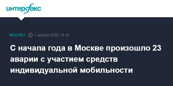Москва. 1 апреля. INTERFAX.RU - За три первых месяца года в Москве произошло 23 аварии с участием средств индивидуальной мобильности (СИМ), заявил начальник УГИБДД ГУ МВД России по Москве Александр Быков.