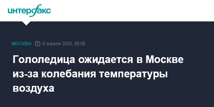Москва. 9 апреля. INTERFAX.RU - Колебания температуры между положительными и отрицательными значениями, а также усиление ветра с порывами до 14 м/с в Москве в среду могут привести к образованию гололедицы, сообщает пресс-служба столичного комплекса городского хозяйства.
