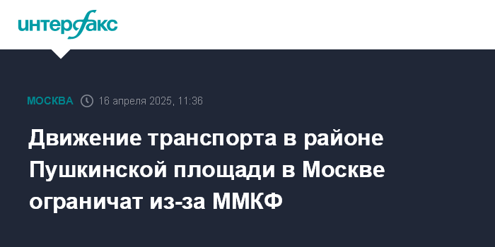 Движение транспорта в районе Пушкинской площади в Москве ограничат из-за ММКФ