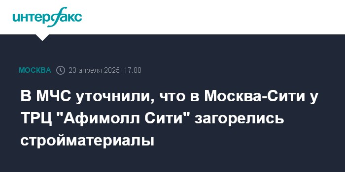 В МЧС уточнили, что в Москва-Сити у ТРЦ "Афимолл Сити" загорелись стройматериалы