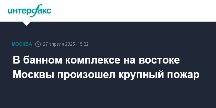 Москва. 27 апреля. INTERFAX.RU - Пожарные ликвидируют крупное возгорание в банном комплексе на востоке Москвы, сообщает пресс-служба МЧС РФ в воскресенье.