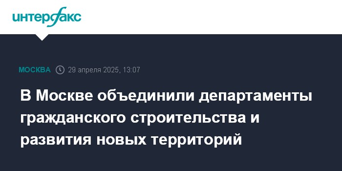 "В целях совершенствования структуры органов исполнительной власти города Москвы правительство Москвы постановляет реорганизовать департамент гражданского строительства города Москвы путем присоединения к нему департамента развития новых территорий города Москвы", - говорится в документе.
