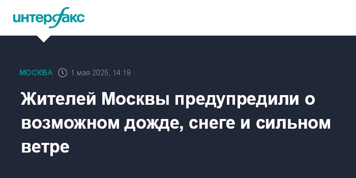 Москва. 1 мая. INTERFAX.RU - По прогнозам синоптиков, в ночь на пятницу, 2 мая, в Москве ожидаются осадки в виде дождя и мокрого снега, порывы ветра могут достигать 15 метров в секунду, говорится в сообщении на сайте правительства города.