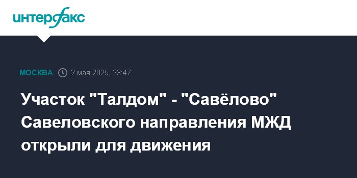 "В 21:40 железнодорожники открыли участок Талдом- Савёлово Савеловского направления МЖД для движения", - говорится в сообщении, размещенном в телеграм-канале МЖД в пятницу.