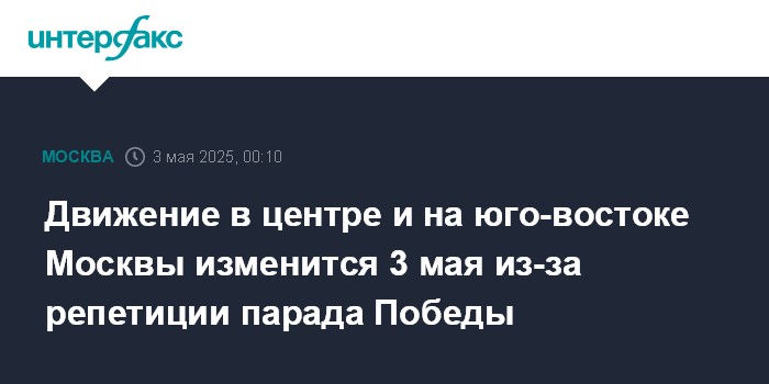 Москва. 3 мая. INTERFAX.RU - Ограничения движения на нескольких улицах в центре и на юго-востоке столицы будут действовать 3 мая в связи с подготовкой к параду Победы, в местах перекрытий будет запрещена парковка, на время будут закрыты некоторые пешеходные переходы, сообщается на портале мэра и правительства Москвы.