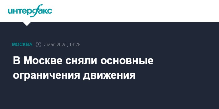 Москва. 7 мая. INTERFAX.RU - Основные ограничения движения в Москве сняты, сообщается в телеграм-канале столичного департамента транспорта в среду.