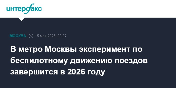 Москва. 15 мая. INTERFAX.RU - В мэрии Москвы рассчитывают, что в 2026 году состоится финальный этап пилотного проекта по организации беспилотного движения в метрополитене, сообщил Первому каналу заммэра города по вопросам транспорта Максим Ликсутов.