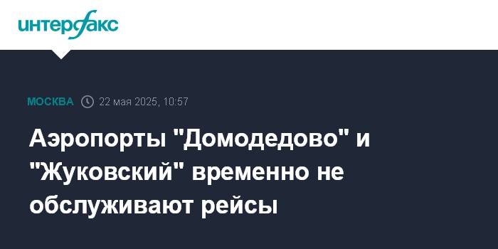 Москва. 22 мая. INTERFAX.RU - Аэропорты "Домодедово" и "Жуковский" временно не обслуживают рейсы из-за введенных ограничений, сообщили в Росавиации.