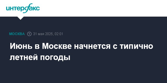 Москва. 31 мая. INTERFAX.RU - Комфортная, типичная для лета погода прогнозируется в Москве в первую неделю июня, днём температура будет в диапазоне плюс 19 - плюс 24 градуса; всплеск тепла будет в четверг, когда воздух прогреется до плюс 28 градусов, сообщил "Интерфаксу" научный руководитель Гидрометцентра России Роман Вильфанд.