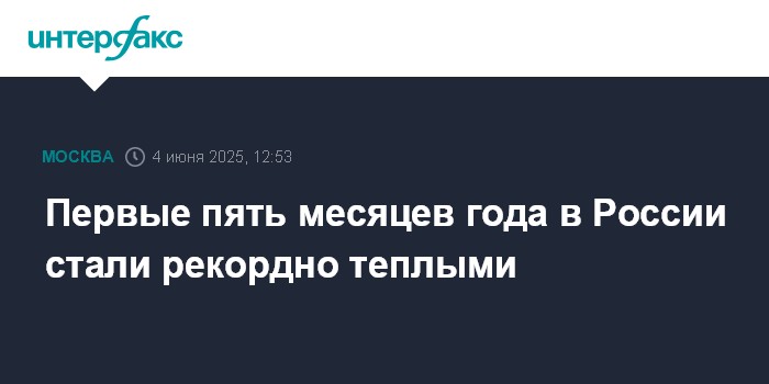 Москва. 4 июня. INTERFAX.RU - Средняя температура в России в первые пять месяцев 2025 года была рекордно высокой за всю историю метеонаблюдений, сообщил научный руководитель Гидрометцентра РФ Роман Вильфанд.