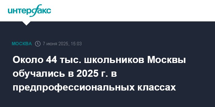 Москва. 7 июня. INTERFAX.RU - Мэр Москвы Сергей Собянин подвел итоги обучения в предпрофессиональных классах в 2025 году.