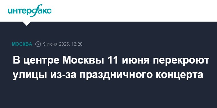 В центре Москвы 11 июня перекроют улицы из-за праздничного концерта