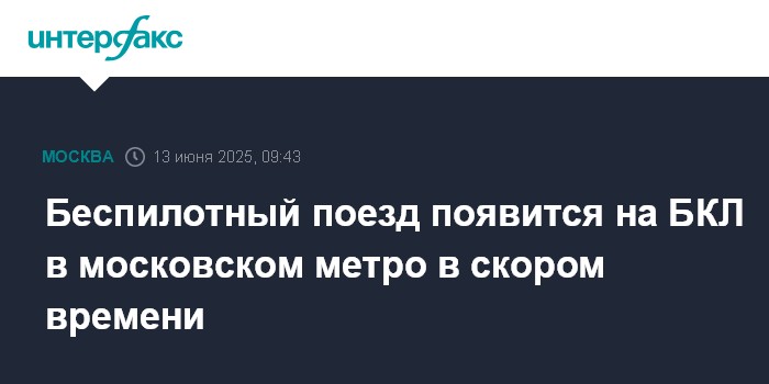 Москва. 13 июня. INTERFAX.RU - Мэр Москвы Сергей Собянин сообщил о подготовке к запуску беспилотного поезда на Большой кольцевой линии московского метро.
