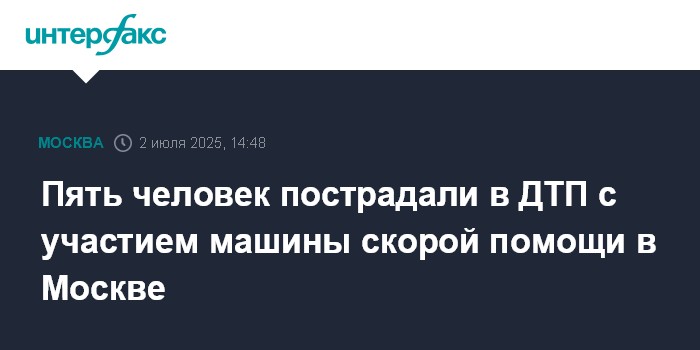 Москва. 2 июля. INTERFAX.RU - В результате столкновения легкового автомобиля и машины скорой помощи пострадали пять человек, трое из них госпитализированы без серьезных травм, сообщили "Интерфаксу" в пресс-службе столичного департамента здравоохранения.