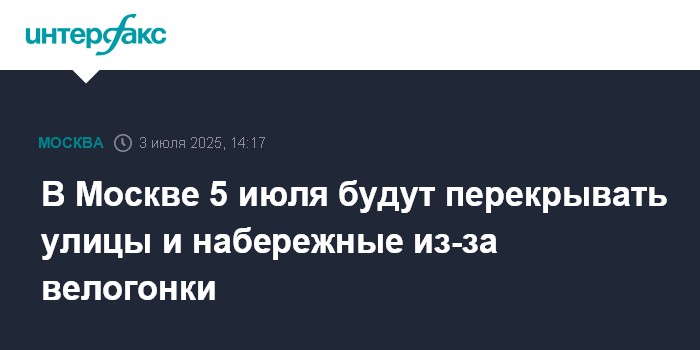 В Москве 5 июля будут перекрывать улицы и набережные из-за велогонки