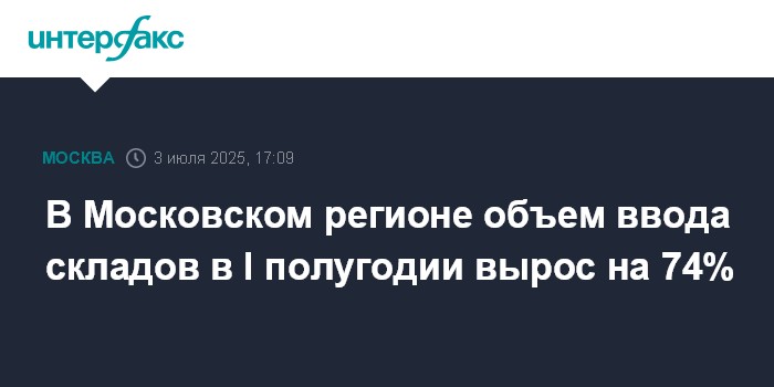 Москва. 3 июля. INTERFAX.RU - В Московском регионе объем ввода качественной складской недвижимости за первое полугодие 2025 года вырос на 74%, сообщает пресс-служба инвестиционно-консалтинговой компании Ricci.