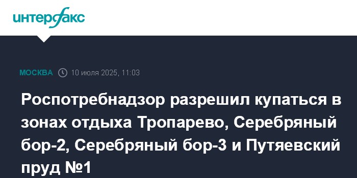 Роспотребнадзор разрешил купаться в зонах отдыха Тропарево, Серебряный бор-2, Серебряный бор-3 и Путяевский пруд №1