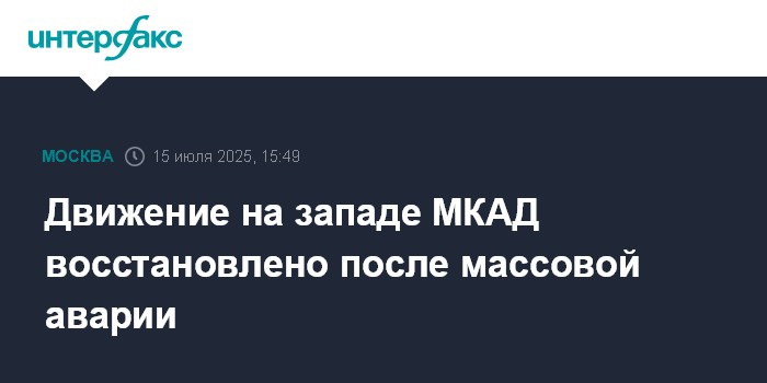 Москва. 15 июля. INTERFAX.RU - Движение транспорта на внутренней стороне МКАД на западе Москвы, нарушенное из-за аварии, восстановлено, сообщили в пресс-службе столичного департамента транспорта.