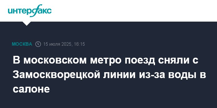 "Движение на Замоскворецкой линии в графике. Ранее из-за обильных осадков на открытом участке линии произошло незначительное попадание воды в салон вагона. Это нарушение культуры обслуживания пассажиров, состав снят с линии для проверки", - говорится в сообщении.