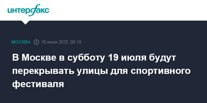 В Москве в субботу 19 июля будут перекрывать улицы для спортивного фестиваля