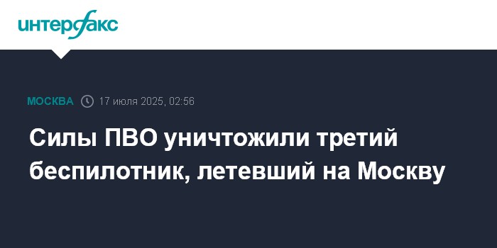 Силы ПВО уничтожили третий беспилотник, летевший на Москву