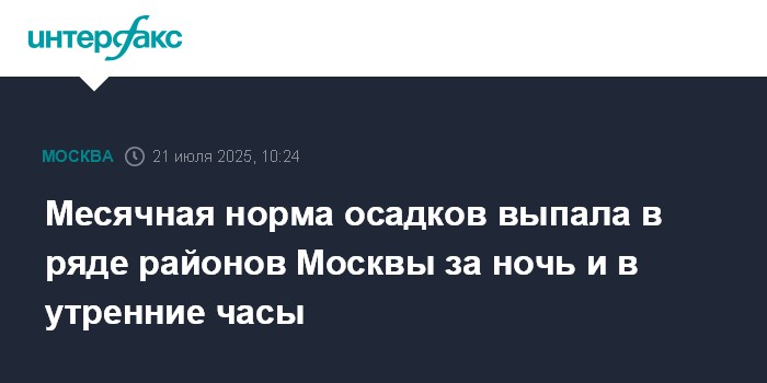 Месячная норма осадков выпала в ряде районов Москвы за ночь и в утренние часы
