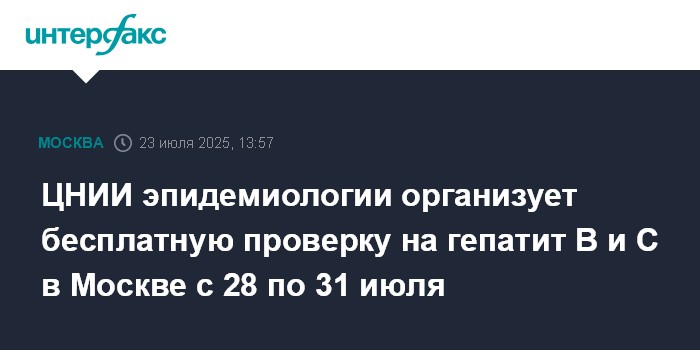 ЦНИИ эпидемиологии организует бесплатную проверку на гепатит В и С в Москве с 28 по 31 июля
