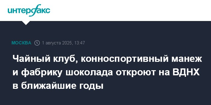 Чайный клуб, конноспортивный манеж и фабрику шоколада откроют на ВДНХ в ближайшие годы