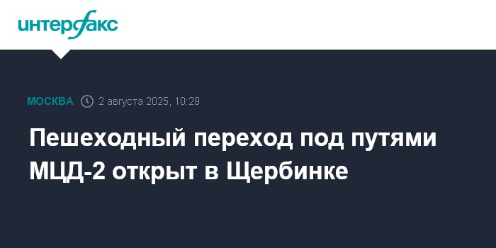 Москва. 2 августа. INTERFAX.RU - Открыт пешеходный переход, расположенный между станциями Щербинка и Остафьево, сообщил в субботу мэр Москвы Сергей Собянин.