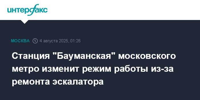 "С 4 августа 2025 года на станции "Бауманская" в связи с ремонтом эскалатора в утренние часы пик и при скоплении пассажиров возможны ситуативные ограничения входа на станцию", - сообщили в департаменте транспорта Москвы.