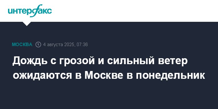 Москва. 4 августа. INTERFAX.RU - Спасатели предупредили жителей столицы о дожде и сильном ветре в понедельник.