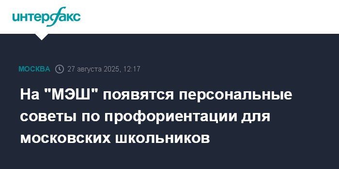 Москва. 27 августа. INTERFAX.RU - На платформе "Московской электронной школы" ("МЭШ") в учебном году появятся персональные рекомендации для старшеклассников по профориентации; они смогут видеть доступные им дни открытых дверей, профессиональные пробы и экскурсии к работодателям, сообщил мэр города Сергей Собянин.
