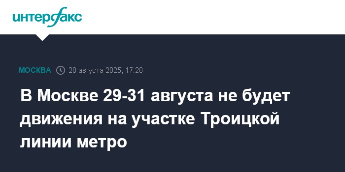 В Москве 29-31 августа не будет движения на участке Троицкой линии метро