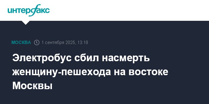 Москва. 1 сентября. INTERFAX.RU - Женщина-пешеход погибла под колесами электробуса на востоке столицы, сообщили в пресс-службе московской Госавтоинспекции.