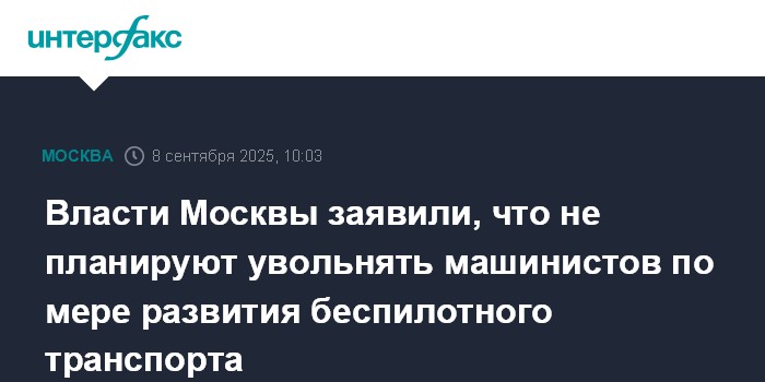 Москва. 8 сентября. INTERFAX.RU - Заммэра Москвы по вопросам транспорта и промышленности Максим Ликсутов заверил, что с развитием в городе беспилотного транспорта увольнять машинистов не будут.