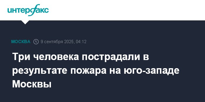 Москва. 9 сентября. INTERFAX.RU - Три человека, включая ребенка, пострадали в результате пожара в жилом доме на юго-западе Москвы, сообщает во вторник пресс-служба столичного главка МЧС.