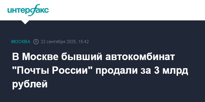 В Москве бывший автокомбинат "Почты России" продали за 3 млрд рублей