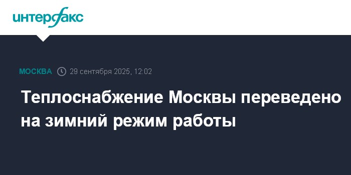 Москва. 29 сентября. INTERFAX.RU - Специалисты комплекса городского хозяйства перевели системы теплоснабжения столицы на зимний режим работы, сообщил заместитель мэра Москвы по вопросам ЖКХ и благоустройства Петр Бирюков.