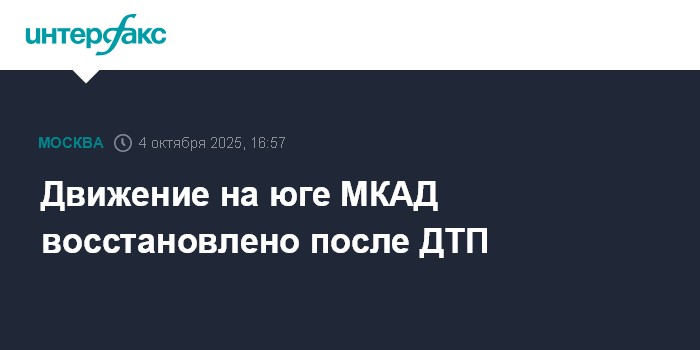 Москва. 4 октября. INTERFAX.RU - Движение на южном участке МКАД, затрудненное после автоаварии, восстановлено, сообщили в столичном департаменте транспорта в субботу.