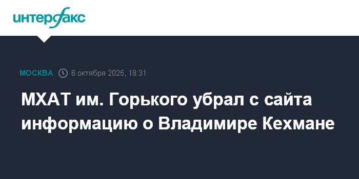 Москва. 6 октября. INTERFAX.RU - Информация о генеральном директоре МХАТ им. Горького Владимире Кехмане удалена с официального сайта театра.