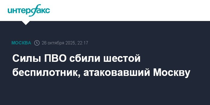 Москва. 26 октября. INTERFAX.RU - Средства ПВО сбили шесть беспилотников, летевших в направлении Москвы, сообщил мэр столицы Сергей Собянин.