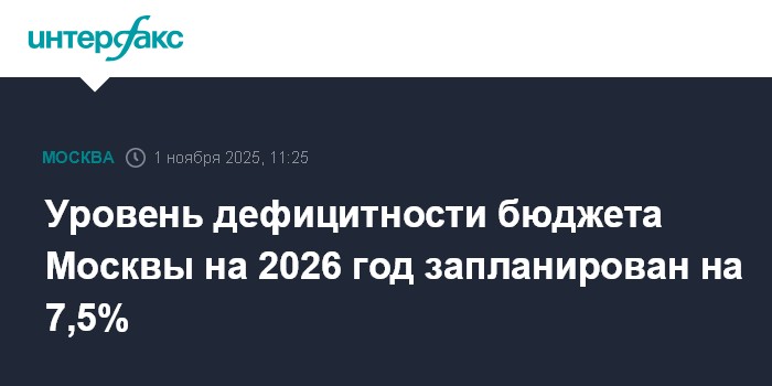 Уровень дефицитности бюджета Москвы на 2026 год запланирован на 7,5%