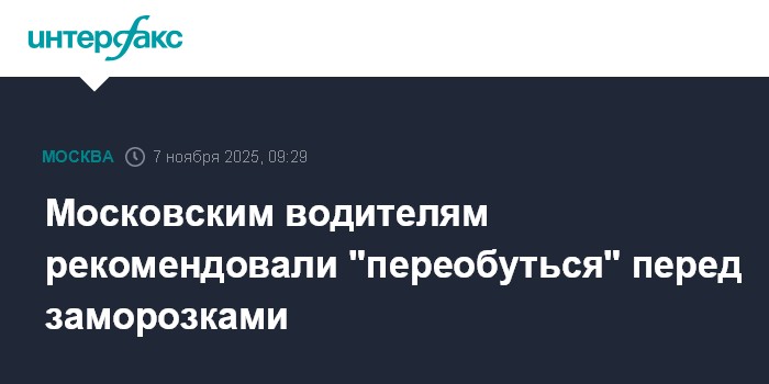 Москва. 7 ноября. INTERFAX.RU - Столичным водителям рекомендовали сменить летнюю резину на зимнюю перед заморозками, которые прогнозируются уже на следующей неделе. Об этом сообщил Департамент транспорта.