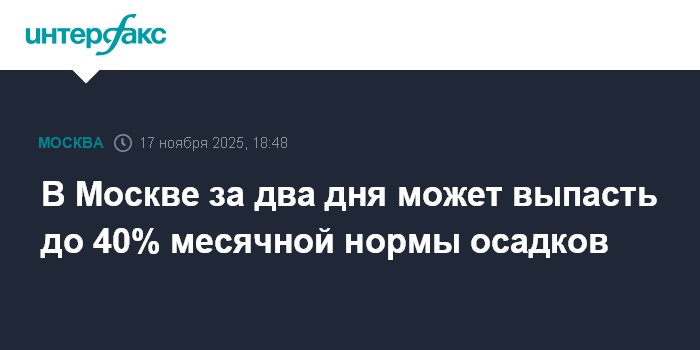 В Москве за два дня может выпасть до 40% месячной нормы осадков