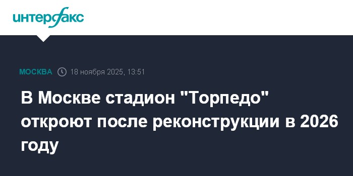 Москва. 18 ноября. INTERFAX.RU - В Москве реконструкцию стадиона "Торпедо" имени Эдуарда Стрельцова на Восточной улице завершат в 2026 году, сообщил журналистам мэр столицы Сергей Собянин.