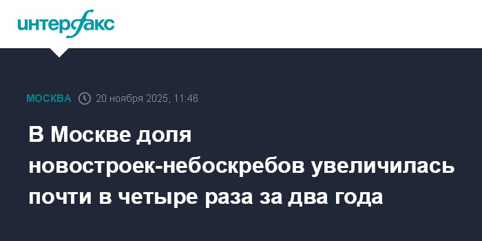 Москва. 20 ноября. INTERFAX.RU - В Москве доля высотных новостроек почти в четыре раза за два года, выяснили в "ИНКОМ-Недвижимости".