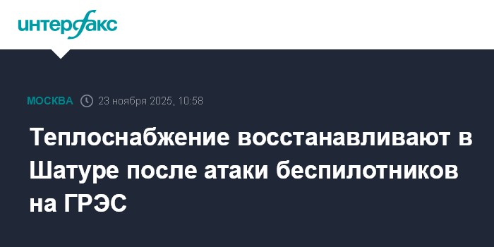 Москва. 23 ноября. INTERFAX.RU - Специалисты восстанавливают теплоснабжение в Шатуре после атаки дронов на ГРЭС, сообщил губернатор Московской области Андрей Воробьев в воскресенье.