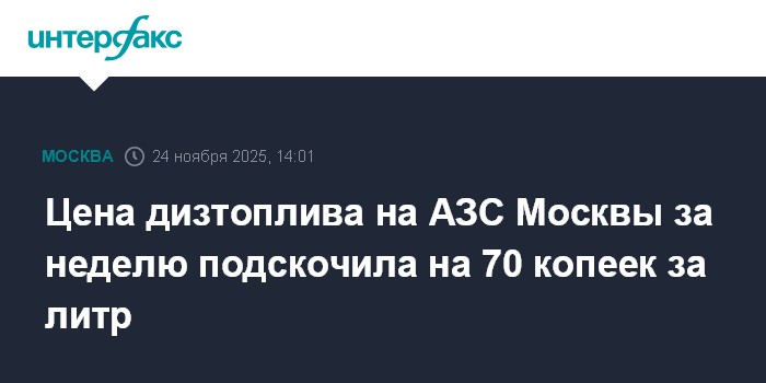 Это самый высокий скачок цен на ДТ за последние полтора месяца. Повышение цен на ДТ на прошедшей неделе продемонстрировали автозаправочные сети крупных нефтяных компаний. Ранее стоимость дизтоплива на столичных заправках росла с середины сентября, но от 13 до 45 копеек в неделю.