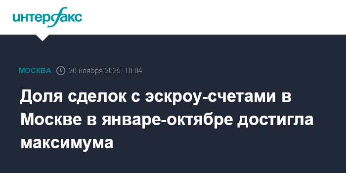 Москва. 26 ноября. INTERFAX.RU - Доля сделок с эскроу-счетами в Москве в 2025 году стала максимальной для января-октября - 98,3%, сообщило управление Росреестра по Москве.