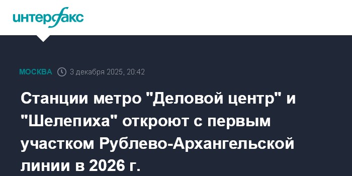 Станции метро "Деловой центр" и "Шелепиха" откроют с первым участком Рублево-Архангельской линии в 2026 г.